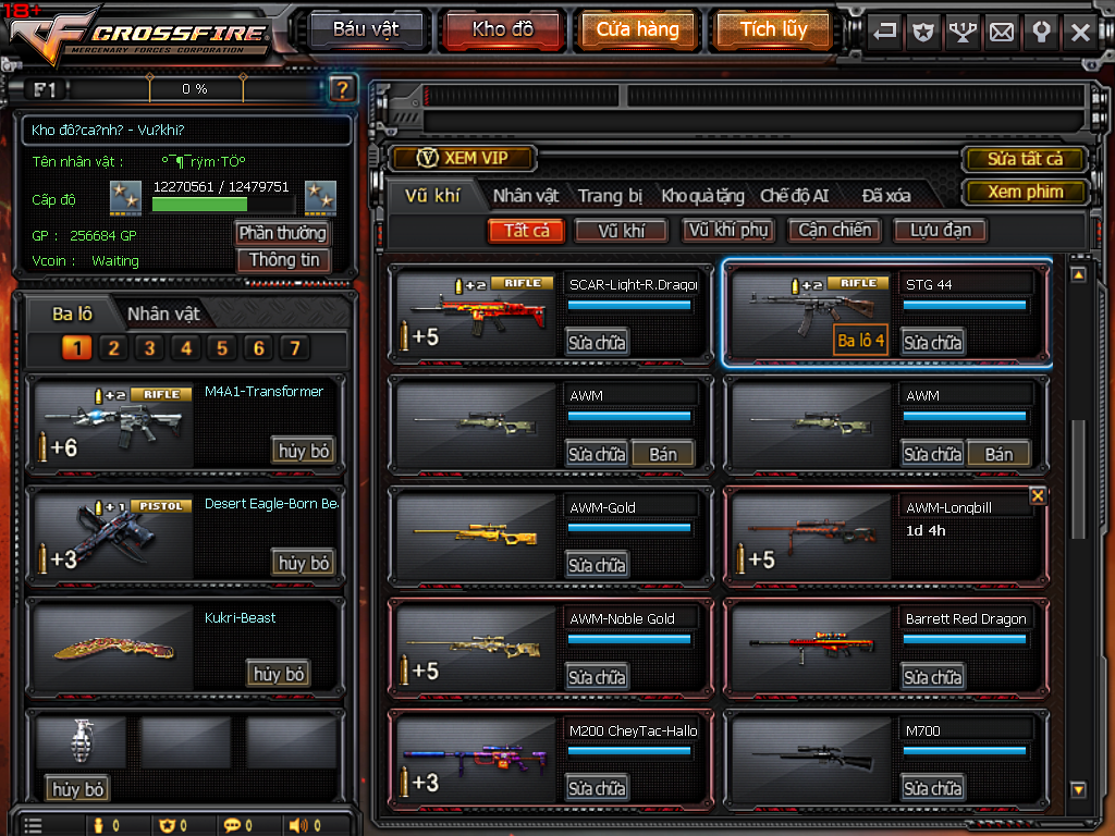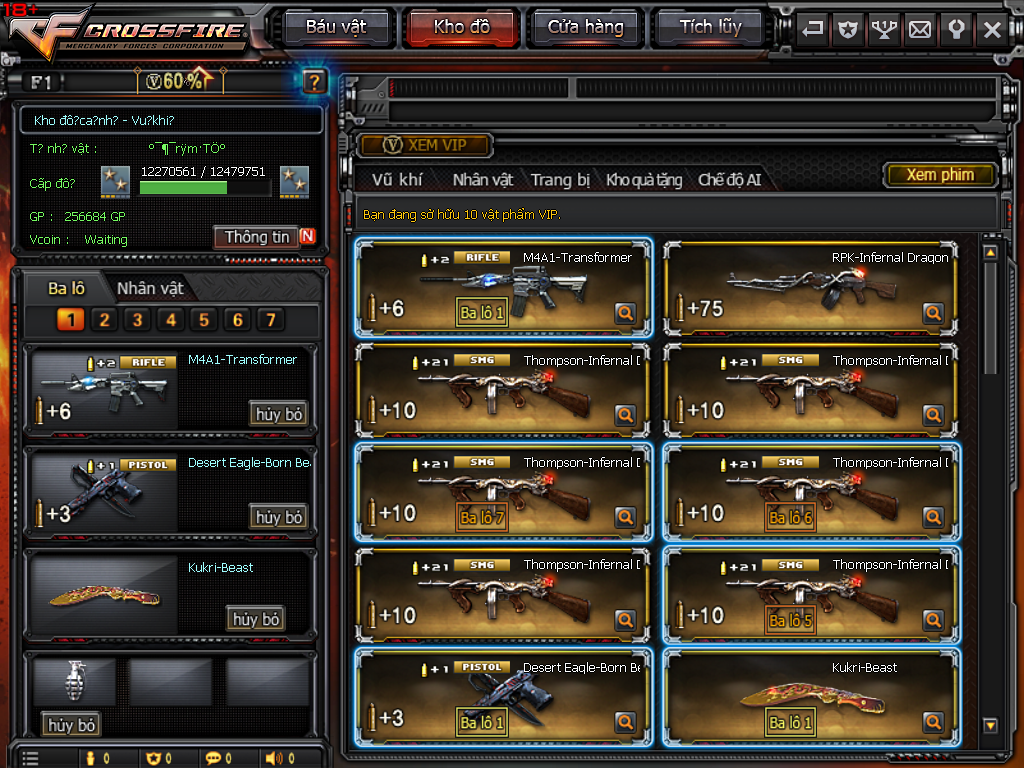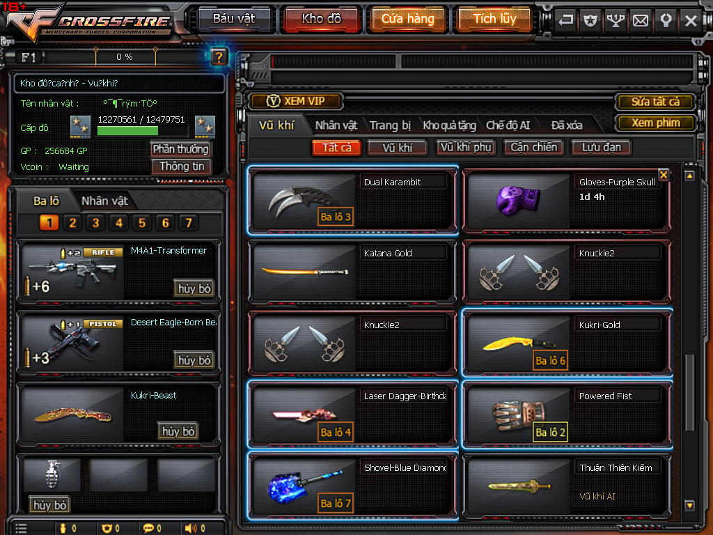 CHI TIẾT KHO ĐỒ ACC 10VIP