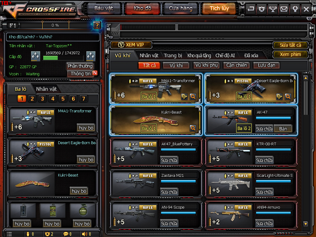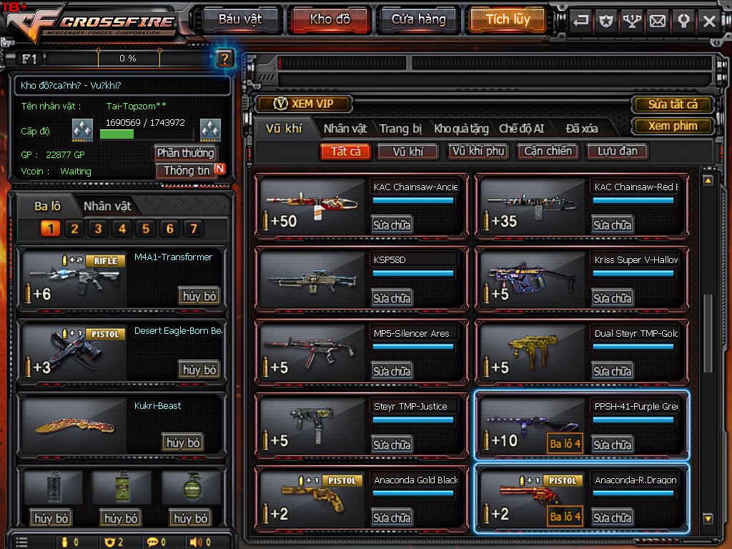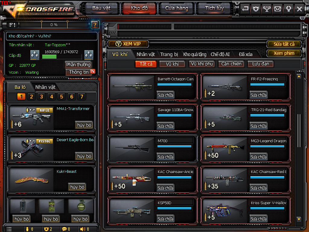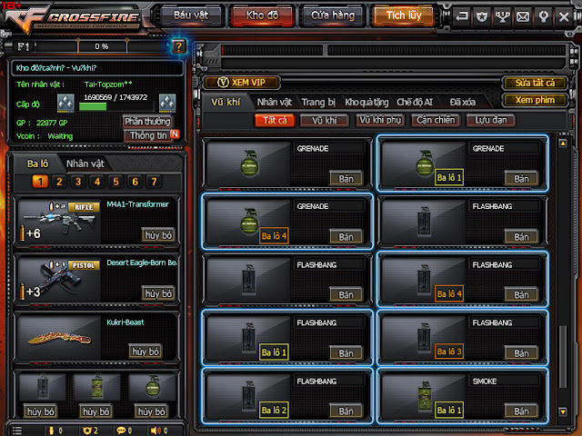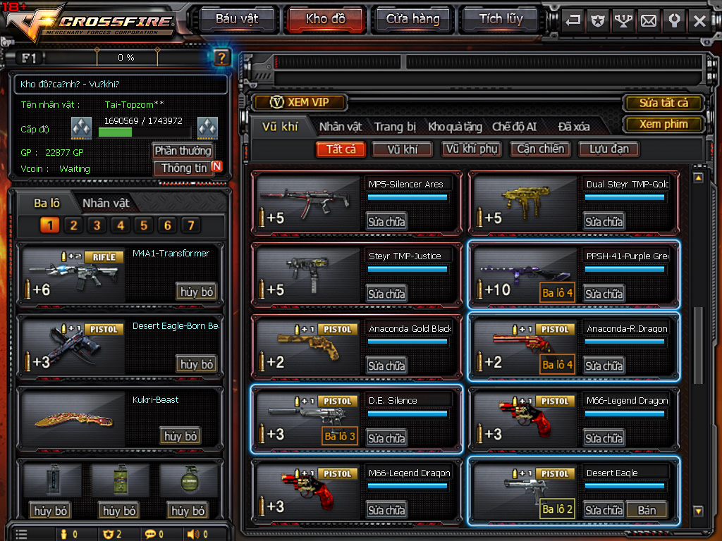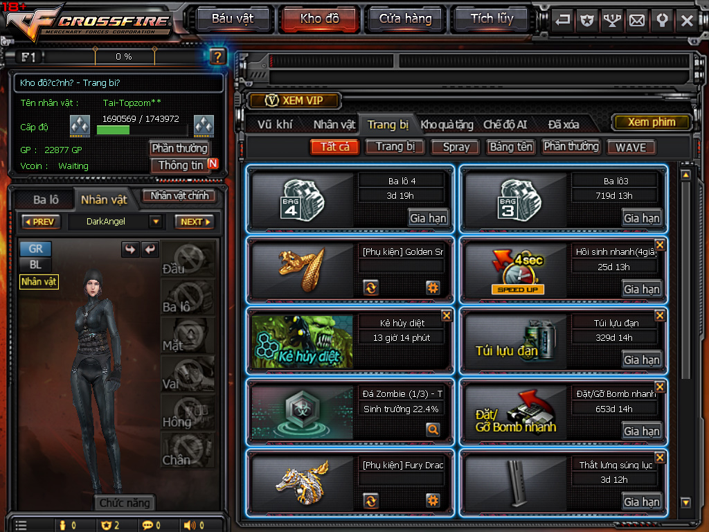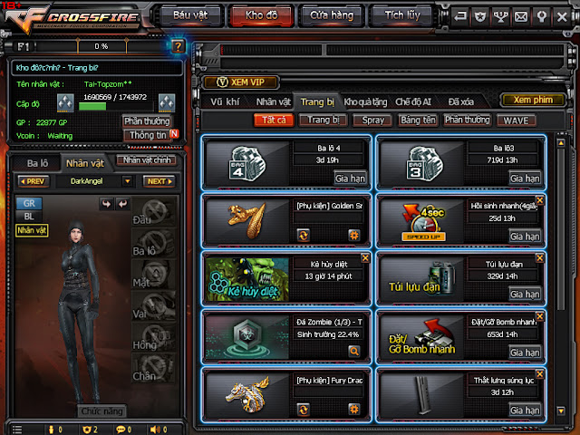 CHI TIẾT KHO ĐỒ ACC 3VIP