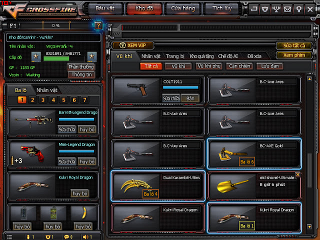 CHI TIẾT KHO ĐỒ ACC 4VIP
