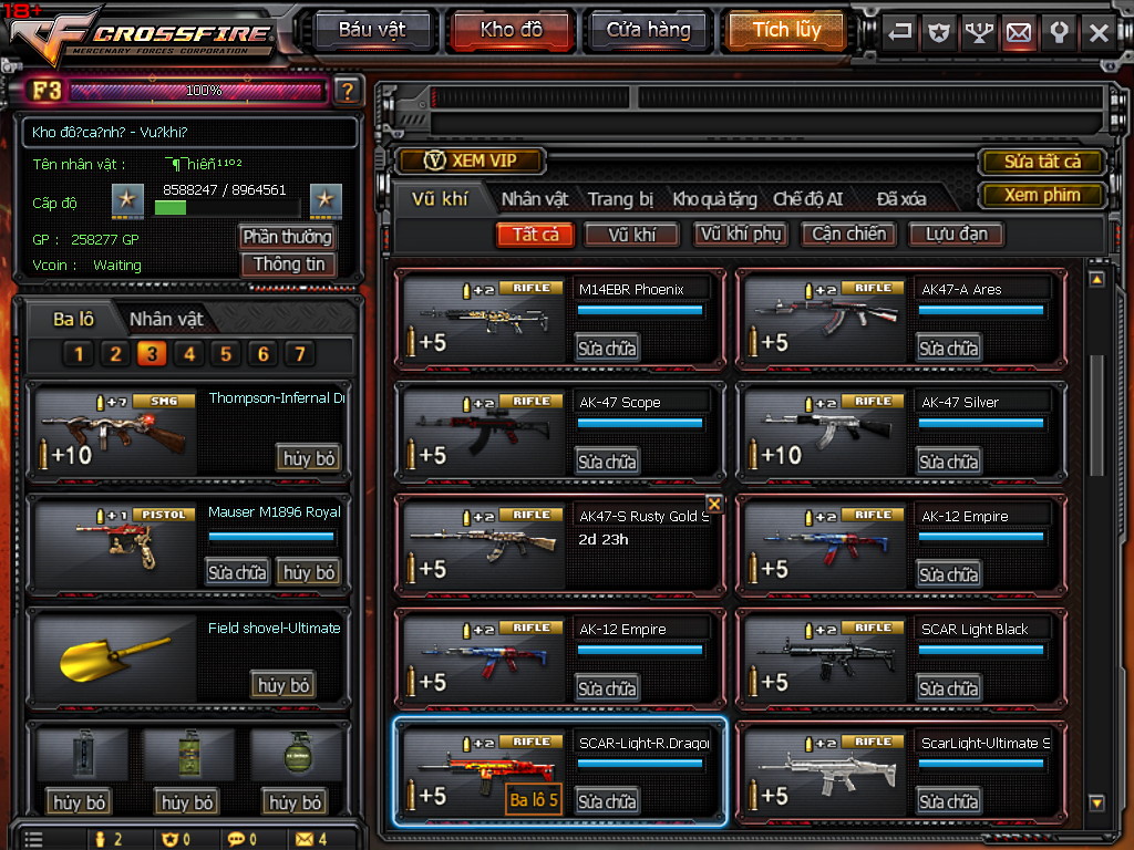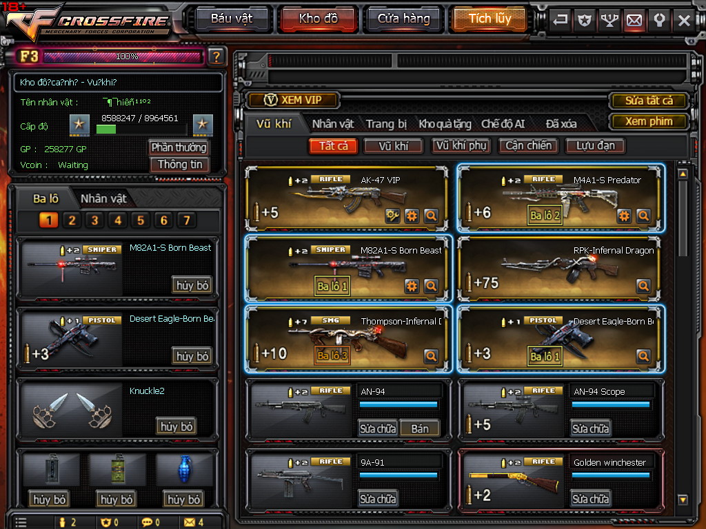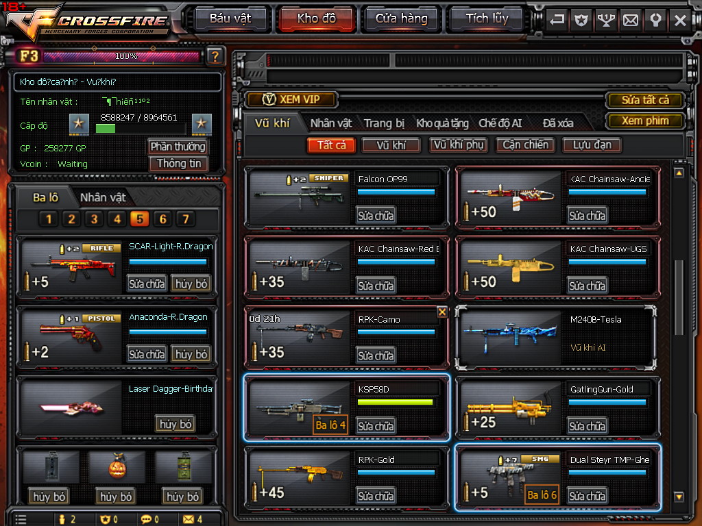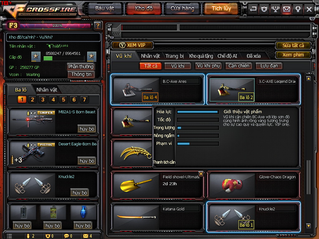 CHI TIẾT KHO ĐỒ ACC 7VIP
