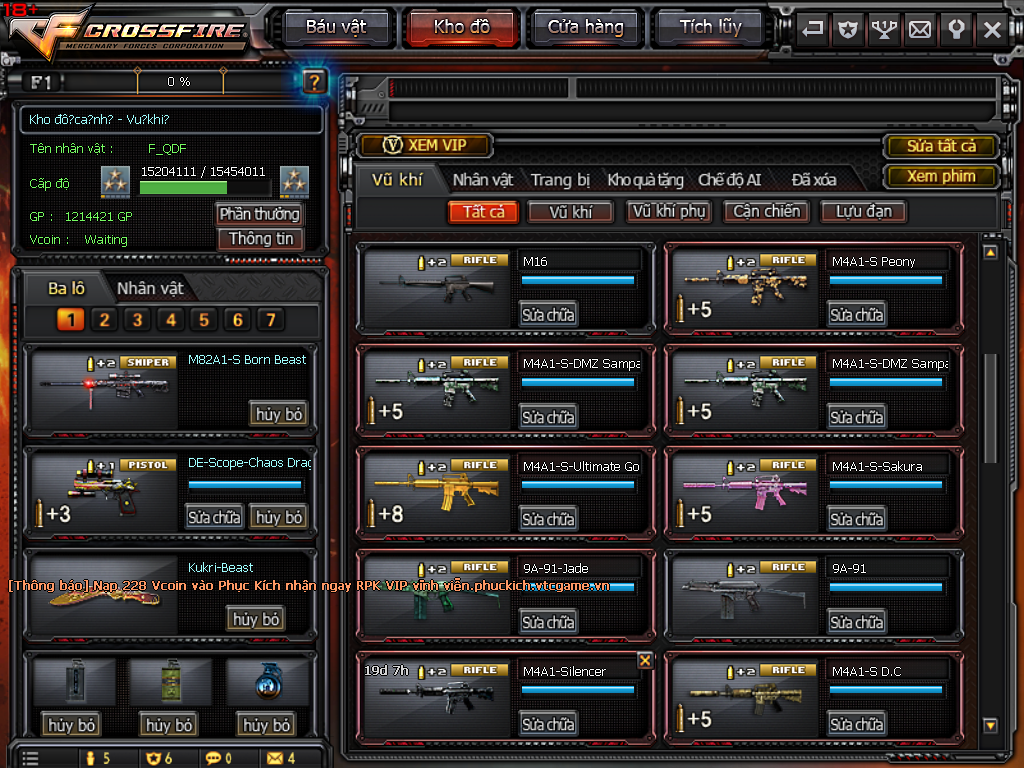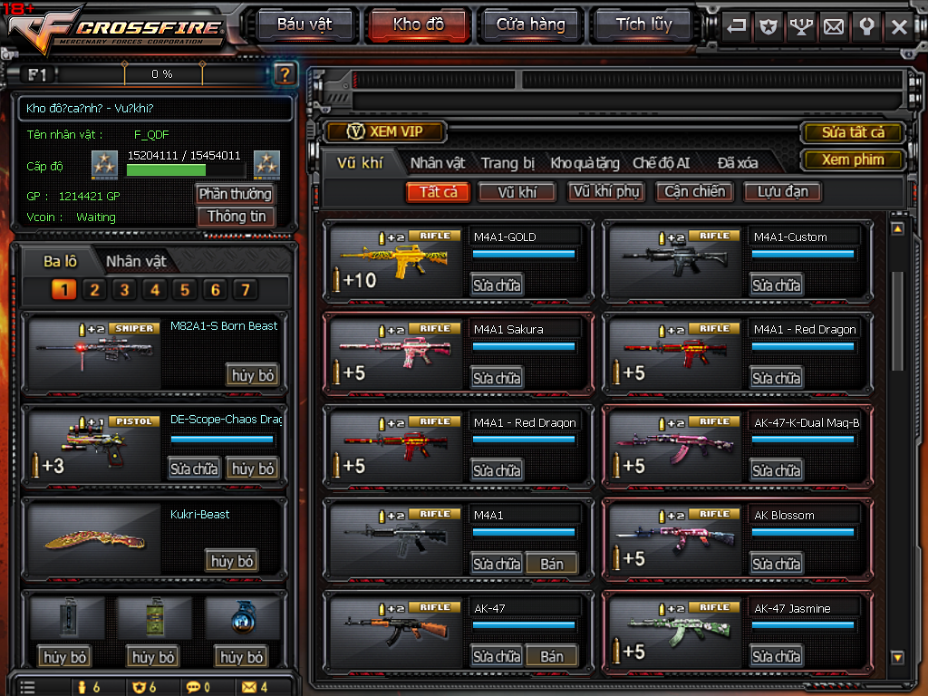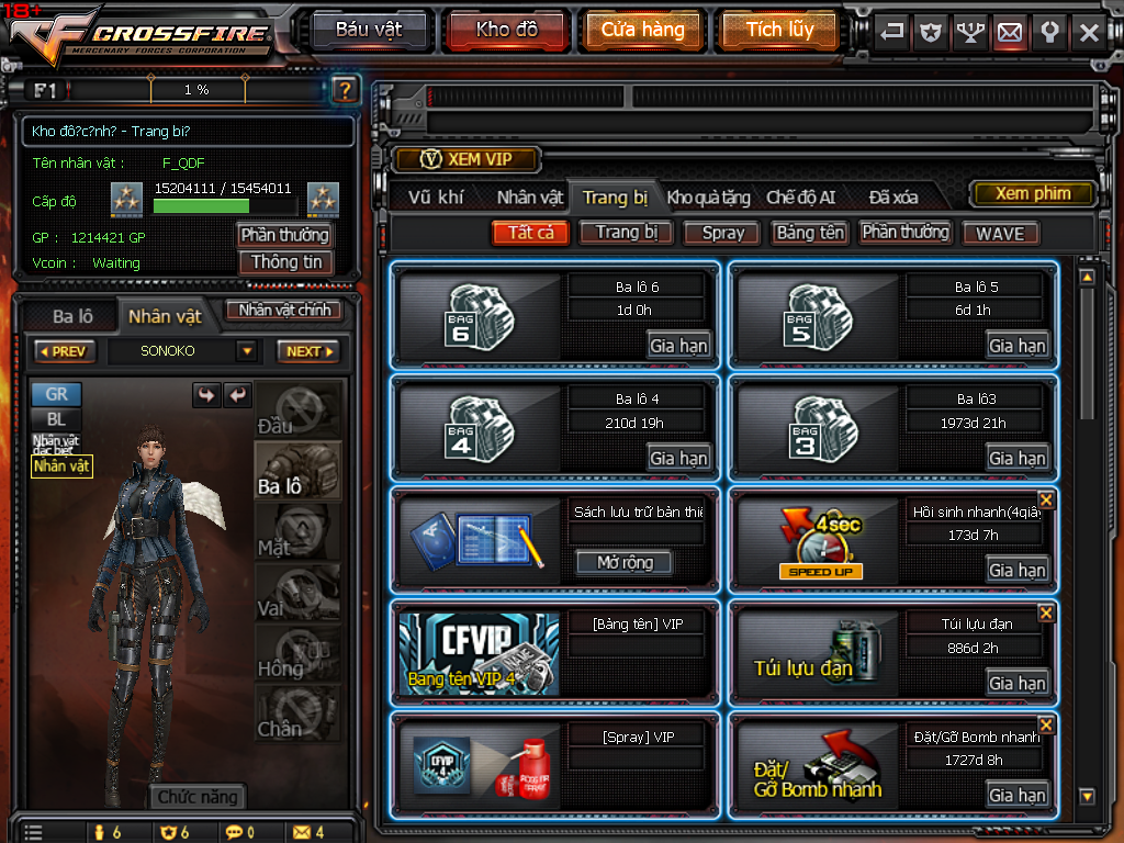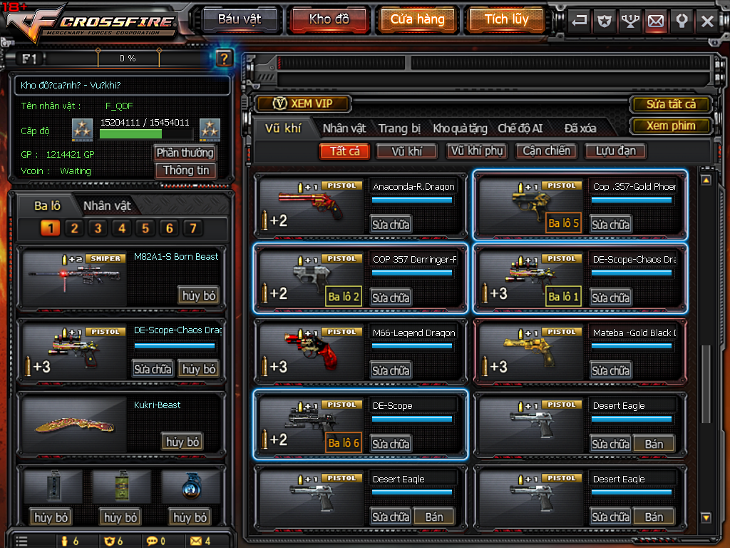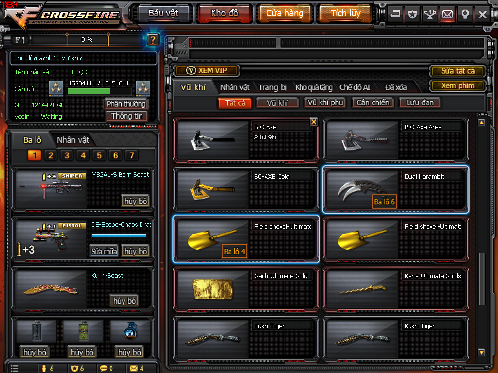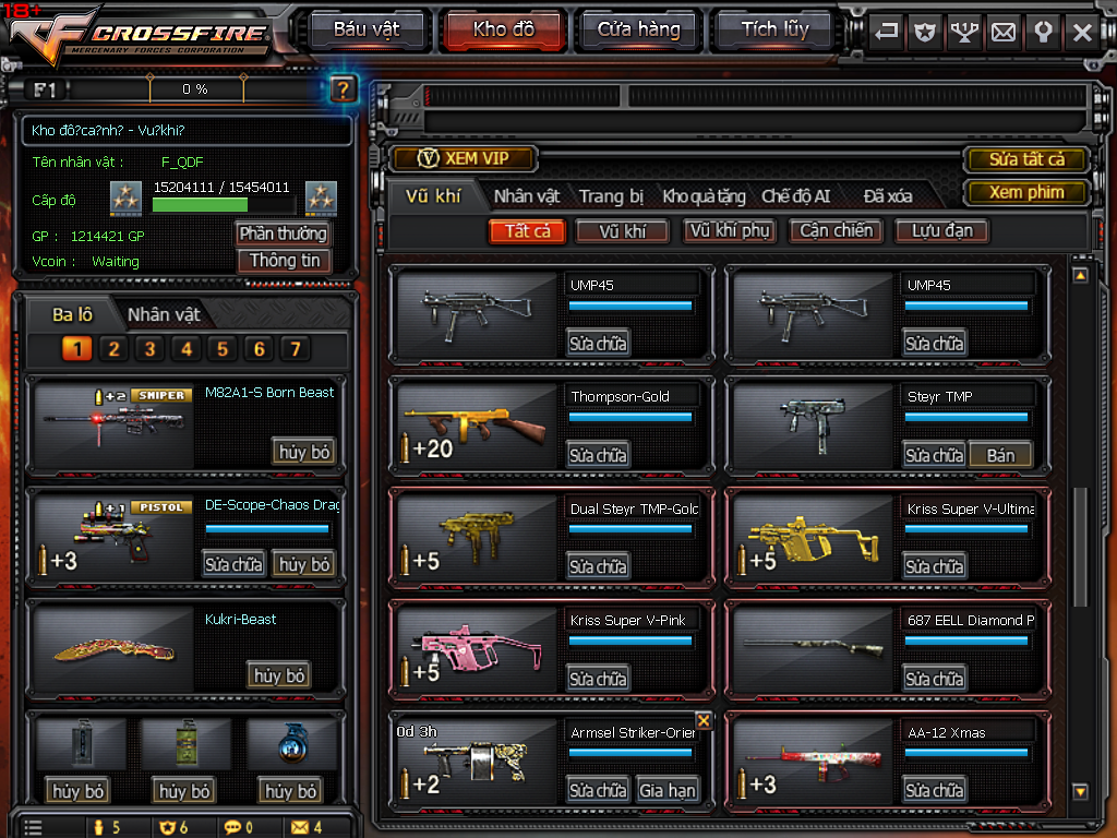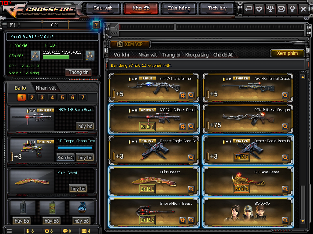 CHI TIẾT KHO ĐỒ ACC 12VIP