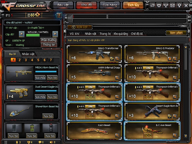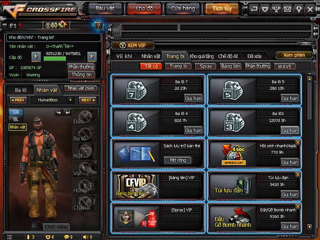 CHI TIẾT KHO ĐỒ ACC 12VIP